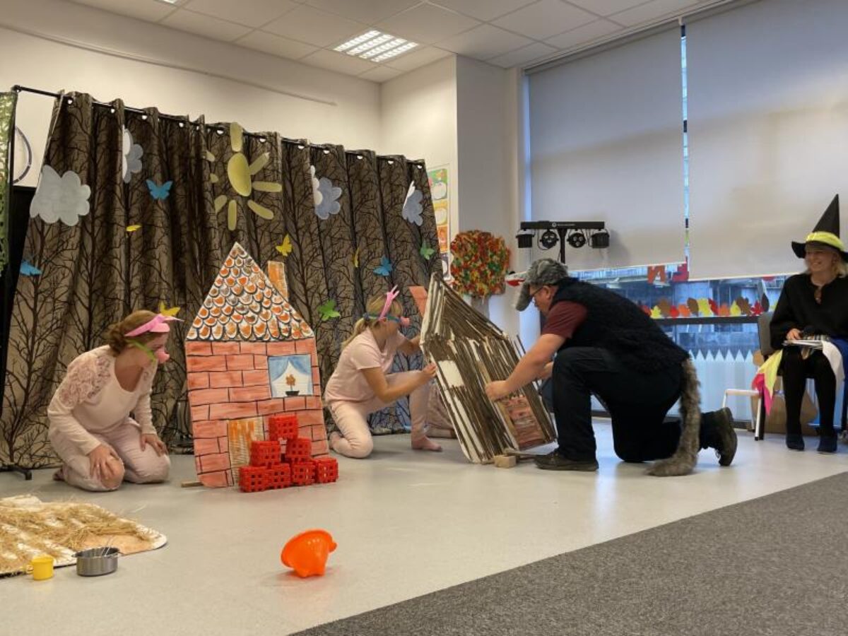 5 listopada obchodzony jest Międzynarodowy Dzień Postaci z Bajek. To jedno z ulubionych świąt naszych przedszkolaków. Wszyscy przyszli dzisiaj w bajecznych humorach i fantazyjnych przebraniach. Kadra, w składzie: pani Ania, pani Agnieszka, pani Paulina, pani Emilia, pani Magda oraz pan Bogdan, przygotowała dla dzieci niespodziankę – przedstawienie teatralne. Spektakl był zabawną i pouczającą adaptacją baśni Braci Grimm O Trzech Małych Świnkach. Przedszkolaki (i reszta kadry) były zachwycone! Śmiechu co niemiara. Dziękujemy aktorom za wspaniałą zabawę!