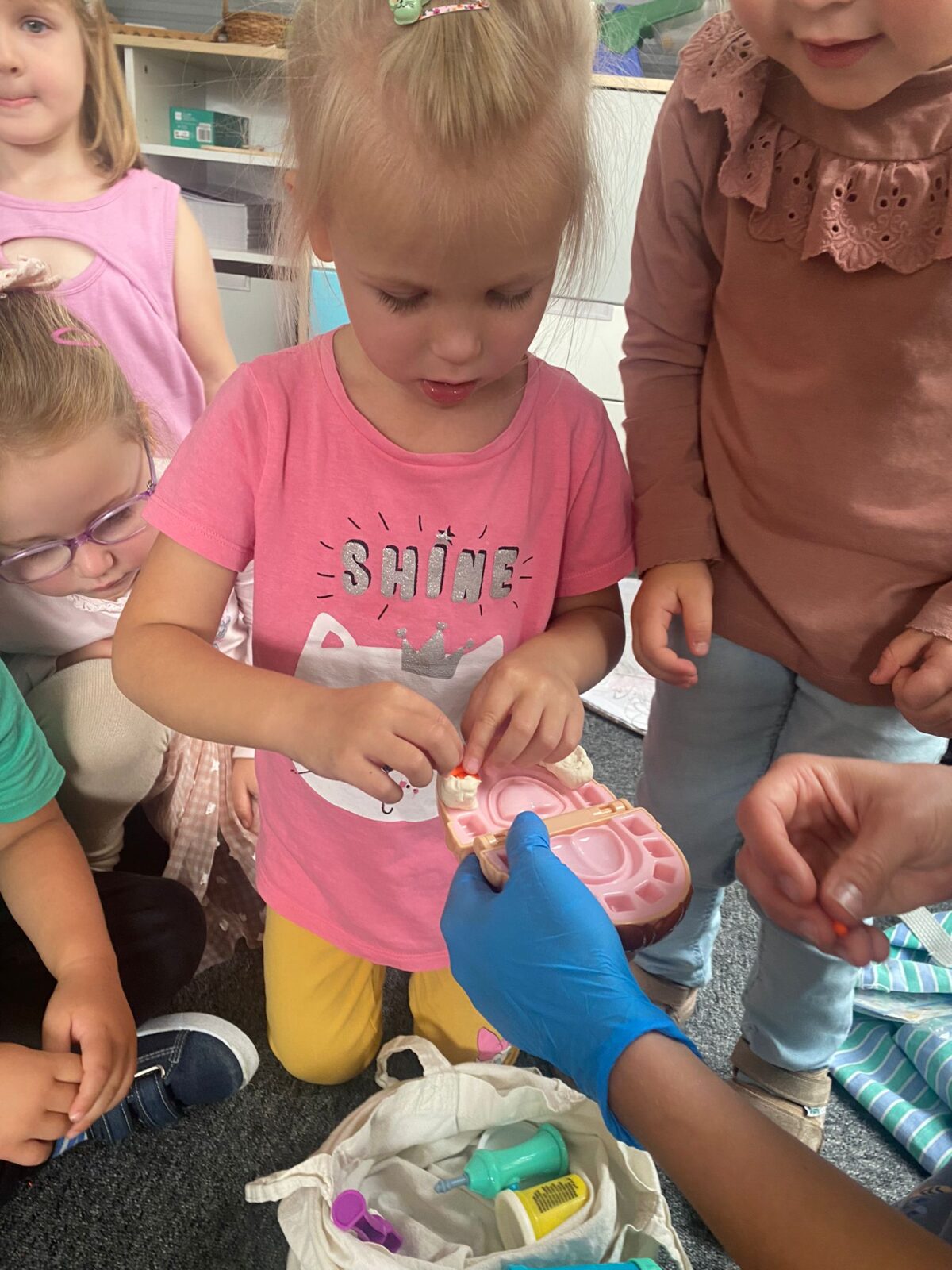 W naszym przedszkolu miało miejsce niecodzienne wydarzenie. Jeżyki odwiedziła Pani Stomatolog (mama Leona), która opowiedziała nam o swoim zawodzie