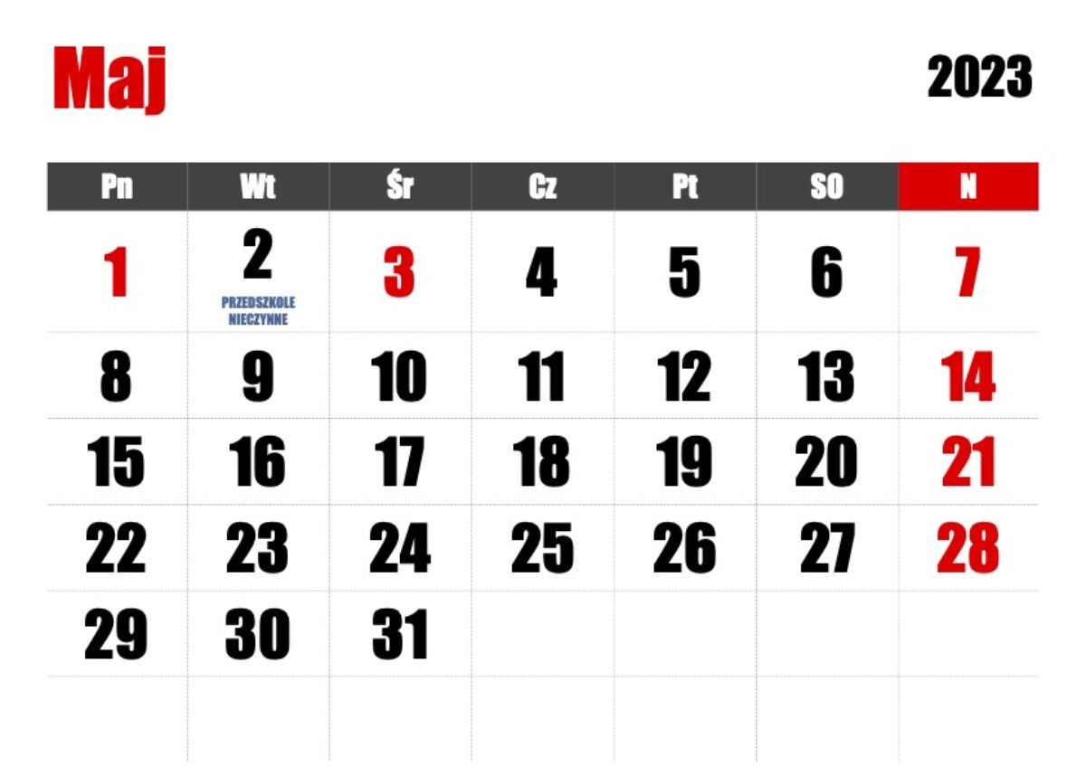 Przedszkole zamknięte 28 kwietnia 2023 Przypominamy, że 2 maja nasze przedszkole jest zamknięte. Udanego dłuuuższego weekendu.