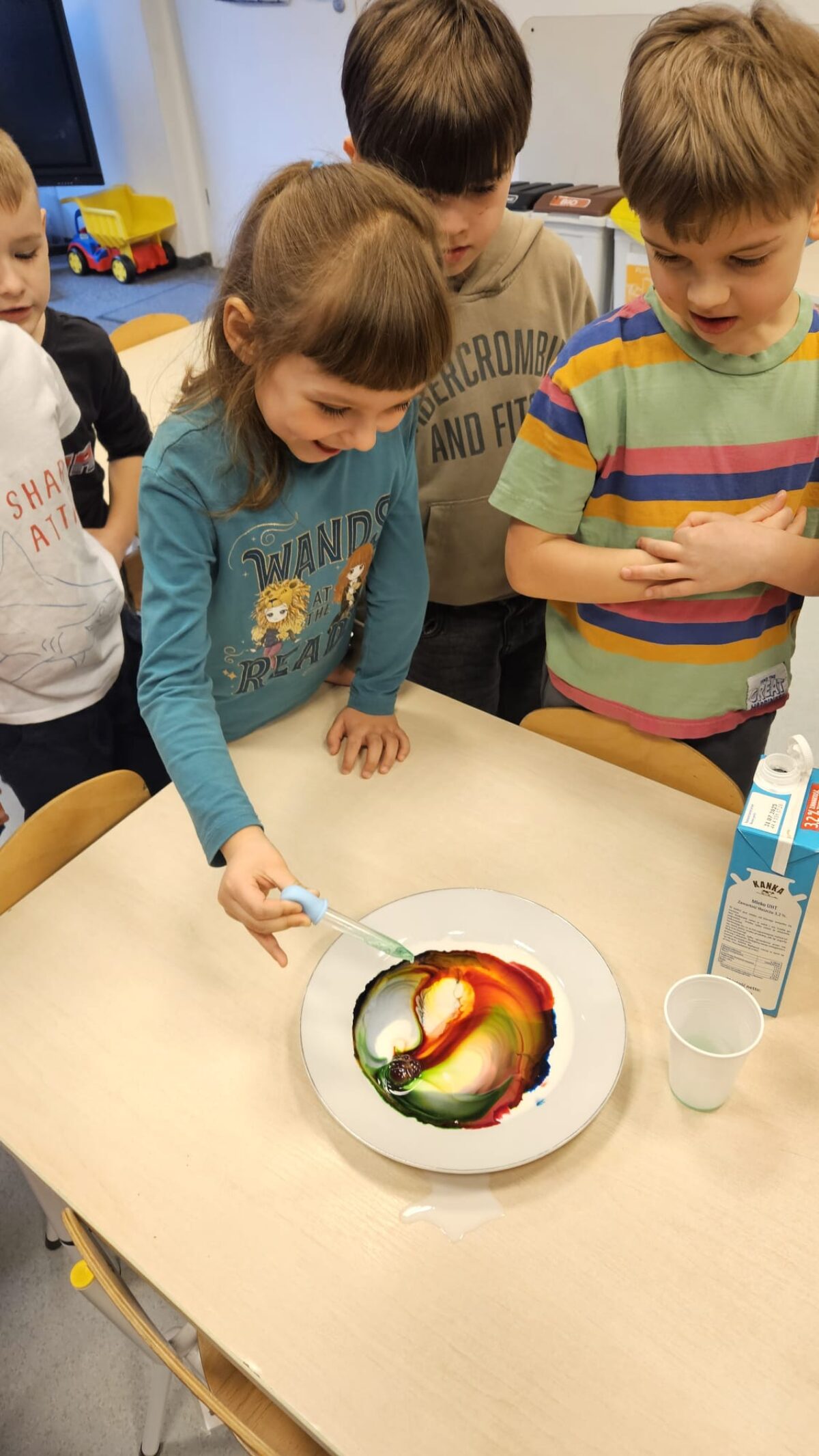 Wiewiórkowe eksperymenty📎🧲🧪 sprawdzamy jak można wyjąć spinacze z wody bez moczenia rąk oraz tworzymy tęczę i mieszamy kolory🌈