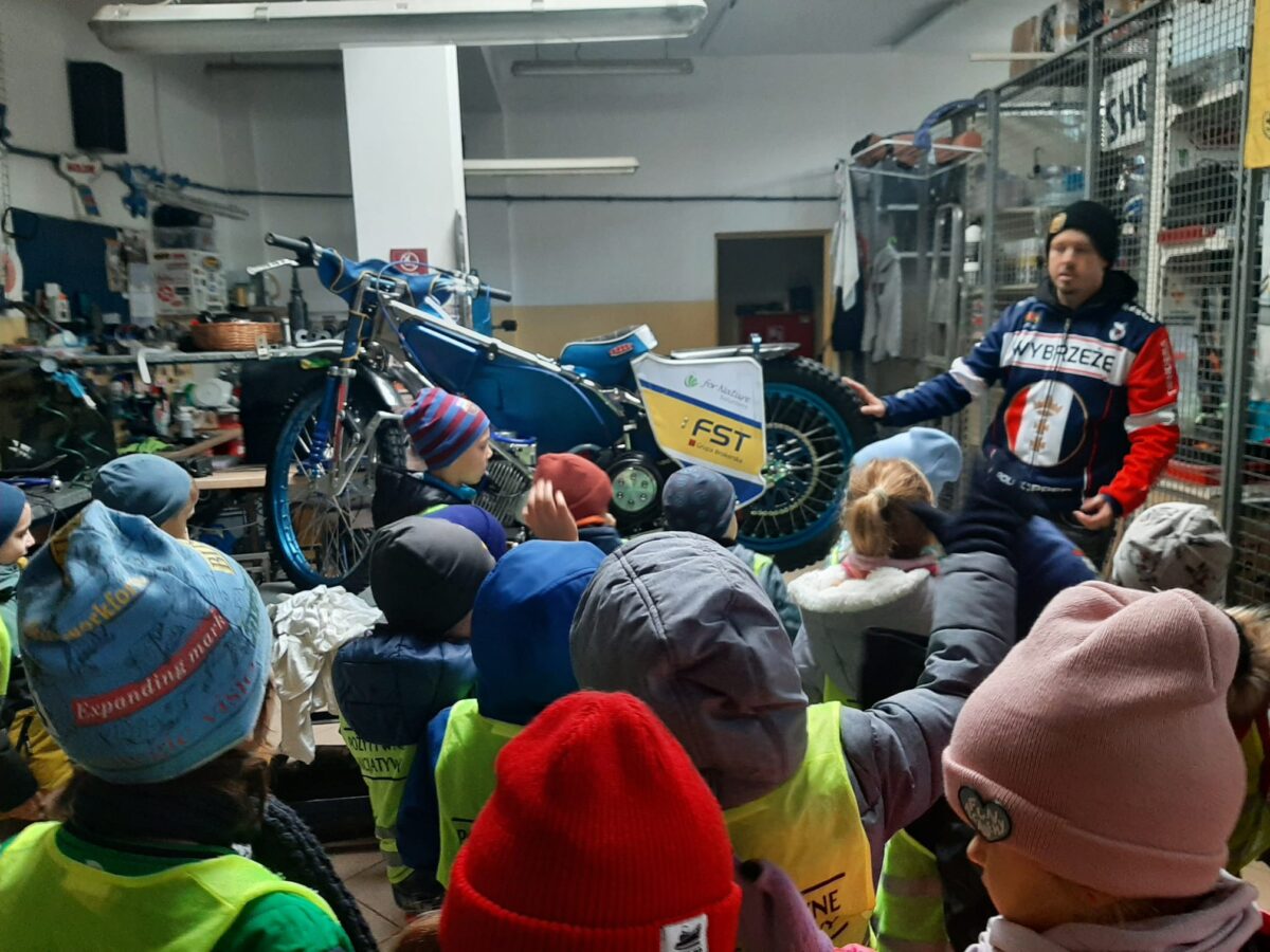 W naszym przedszkolu czasami słychać głośny hałas unoszący się z oddali. To dochodzące dźwięki z pobliskiego stadionu żużlowego. Jelonki i Sówko-Niedźwiadki postanowiły wybrać się w to miejsce aby sprawdzić co jest przyczyną owych hałasów. I co? Wszystko za sprawą motocykli. Dziękujemy Wybrzeże Gdańsk za ciekawe spotkanie.